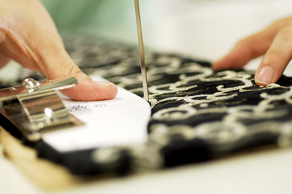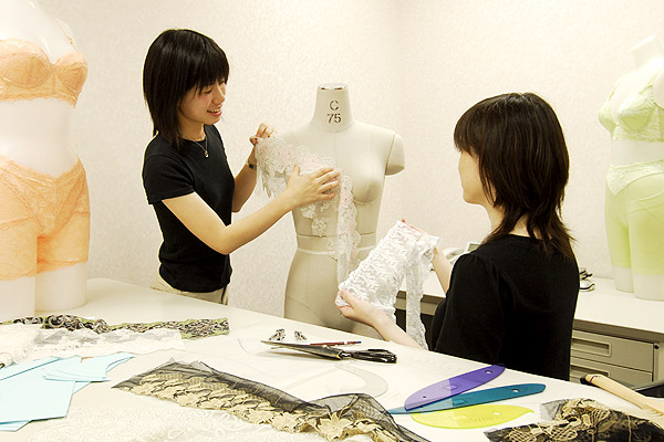 ボディファンデーションの製造工場には、デザイン室、CADルーム、裁断室、縫製室など各工程を専門的に請け負う施設があり、お互いが自由に行き来できます。また、クラフトマンシップ豊かなスタッフによる細やかな手仕事と、CAD・CAMなどの機械設備による先鋭の技術を巧みに融合させています。こういった環境を整えることで、部署同士のフィードバックと品質管理が徹底した製造を可能にし、ボディメイク機能とファッション性をしっかりと両立した理想のボディファンデーションを実現しているのです。